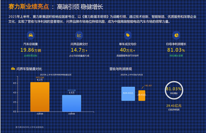 根据赛力斯集团股份有限公司(股票代码:601127)2025年半年度报告,以下是提取出的重要经营数据及其分析要点,分条列出如下: