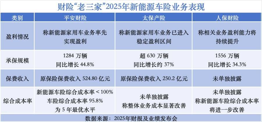 财险“老三家”率先盈利,市场份额占近八成近期各家上市险企陆续披露2025年报,平安财险、太保产险、人保财险新能源车险(新能源家用车业务)已率先实现盈利。但也有个别险企“破局”,如比亚迪财险。